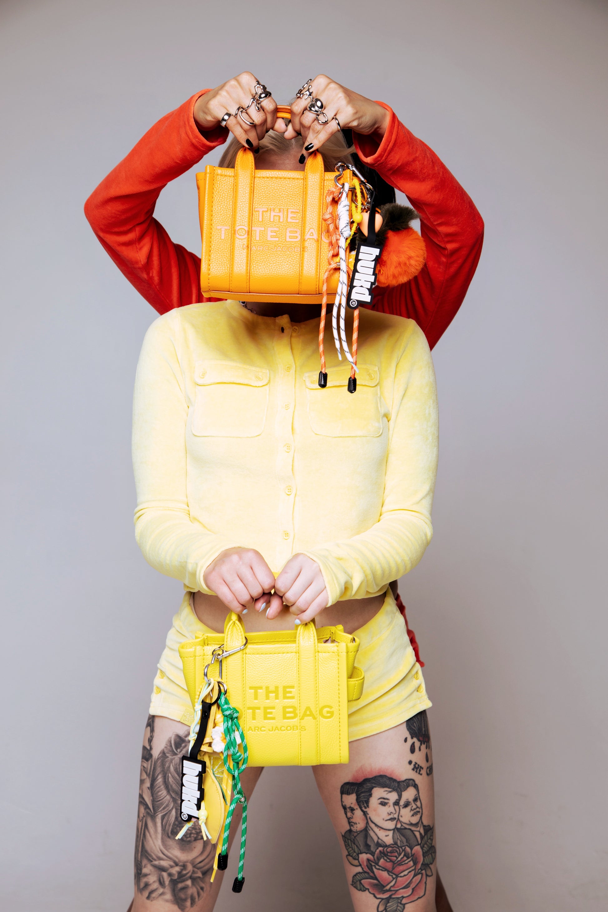 Why settle for boring when your bag could literally scream personality? Meet the HUKD bag charm: a chaotic mix of orange tones, faux fur orange, pom poms and braided cord.