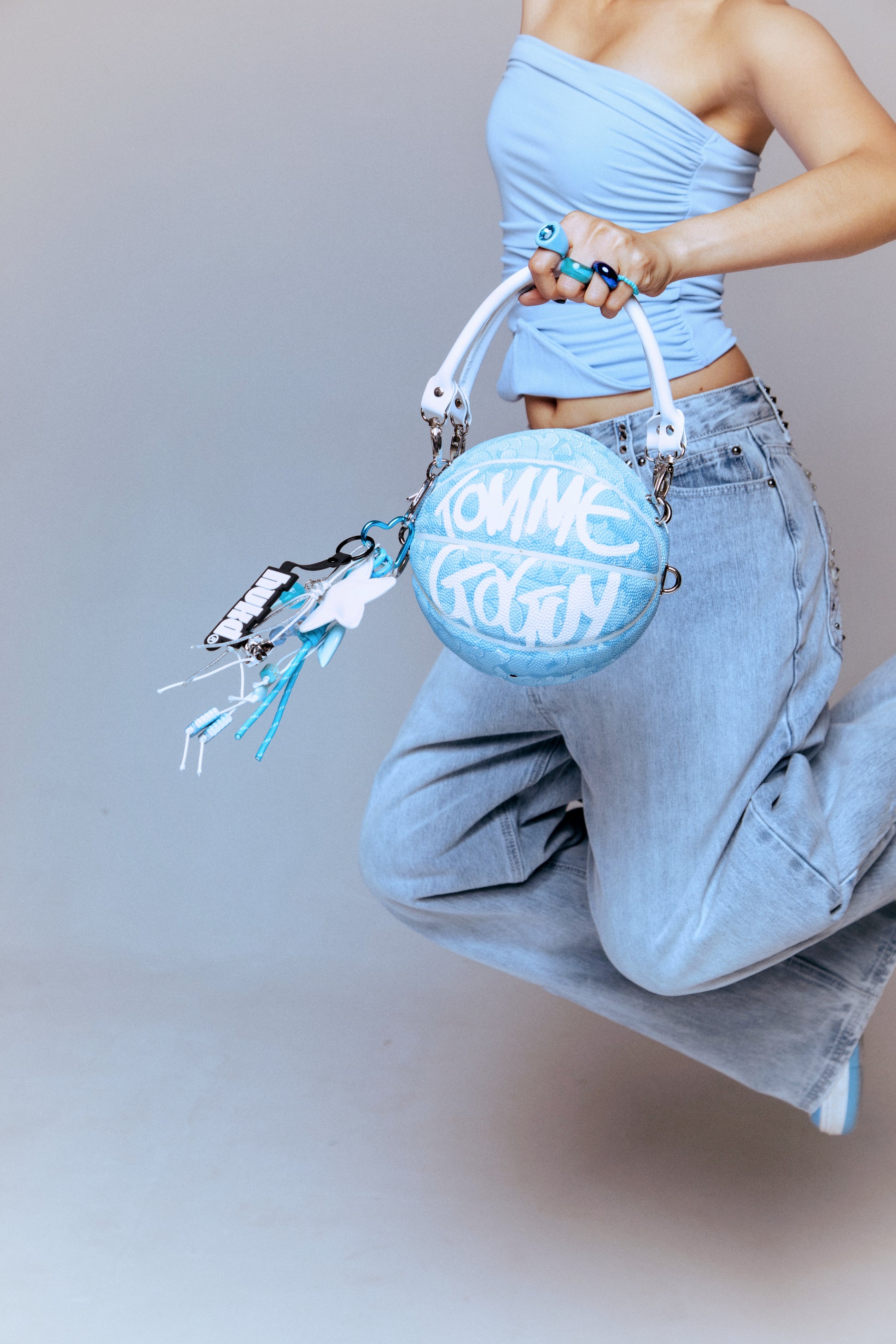 Why settle for boring when your bag could literally scream personality? Meet the HUKD bag charm: a chaotic mix of pastel blues, stars, chunky chains and braided cord.